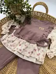 Çiçek desenli 2’li takım, MOEBOON markasının zarif tasarımıyla kız bebekler için özel olarak üretilmiştir. Bu ikili takım, şıklığı ve konforu bir arada sunarak, bebeklerin günlük giyimleri için ideal bir seçenek oluşturmaktadır.